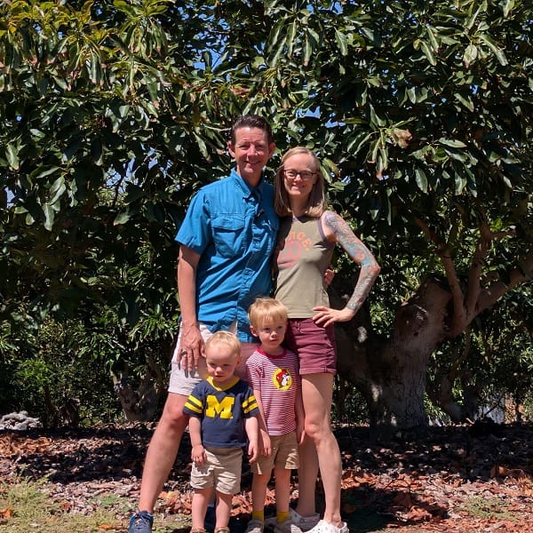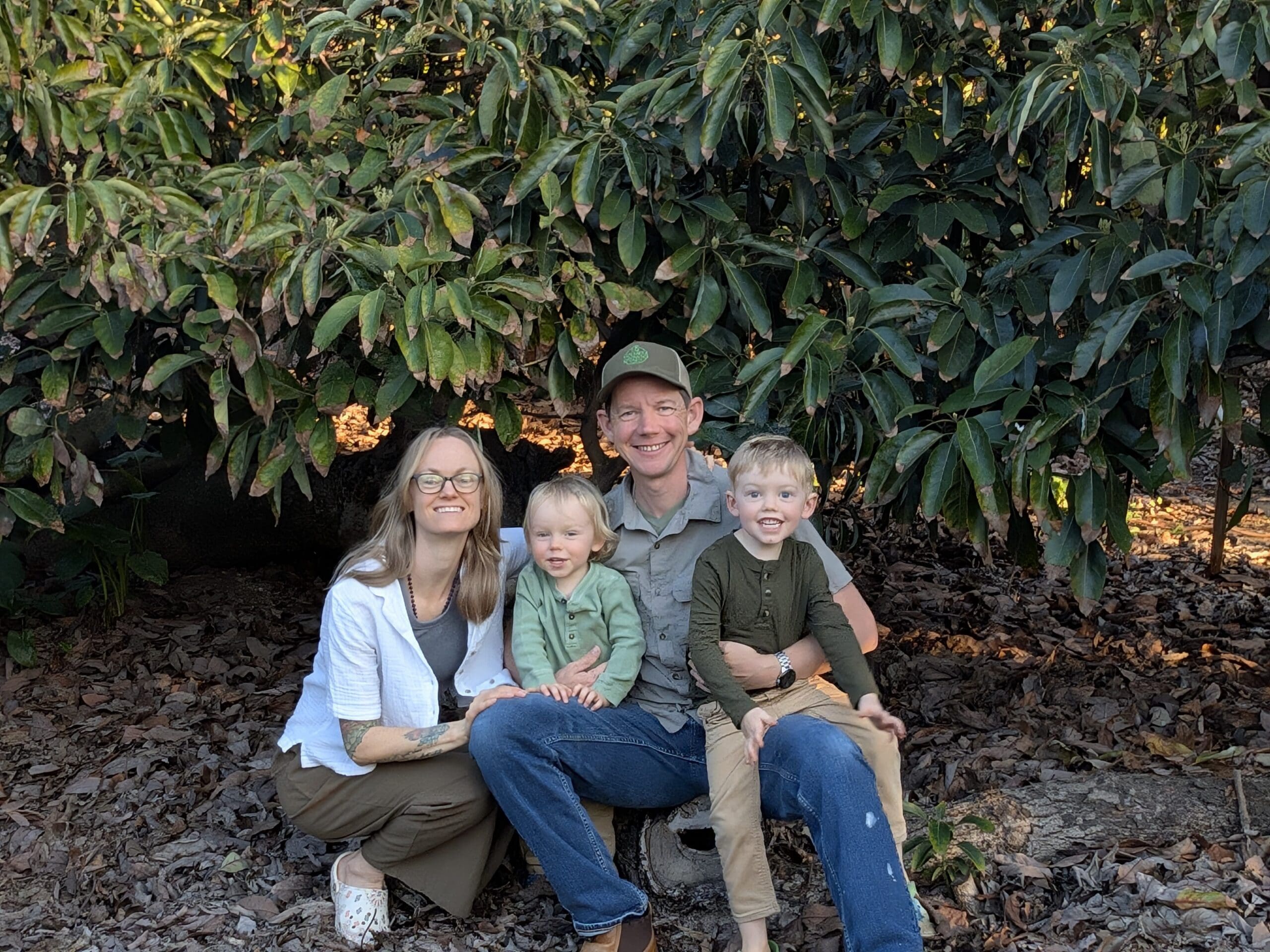 Kirk and Becca are raising their boys, Neil (4) and Archer (2) right on this grove where Kirk was raised. They love climbing avocado trees, baking in their mud kitchen, and helping mom in the kitchen and garden.